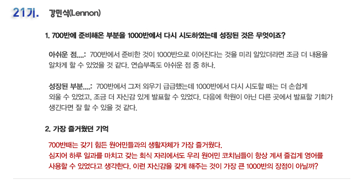 국내 집중 어학연수 21기 강민식 6개월의 변화과정