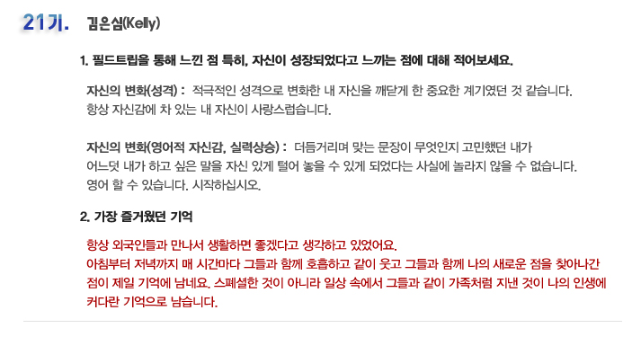 국내 집중 어학연수 21기 김은심 6개월의 변화과정