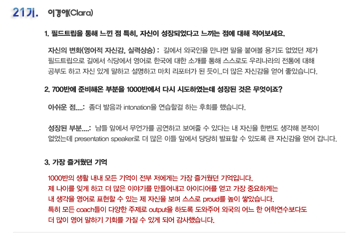 국내 집중 어학연수 21기 이다경 6개월의 변화과정