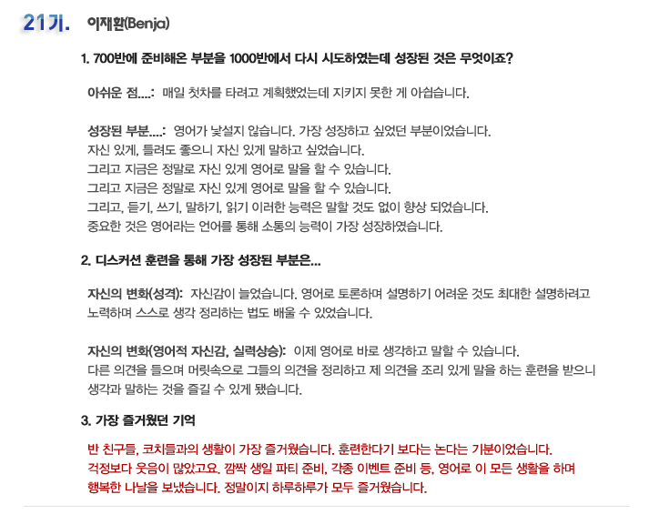국내 집중 어학연수 21기 이재민 6개월의 변화과정