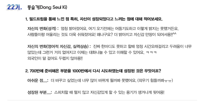 단기 집중 국내 어학연수 22기 동슬기 6개월의 변화과정