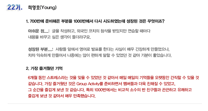 단기 집중 국내 어학연수 22기 전승우 6개월의 변화과정