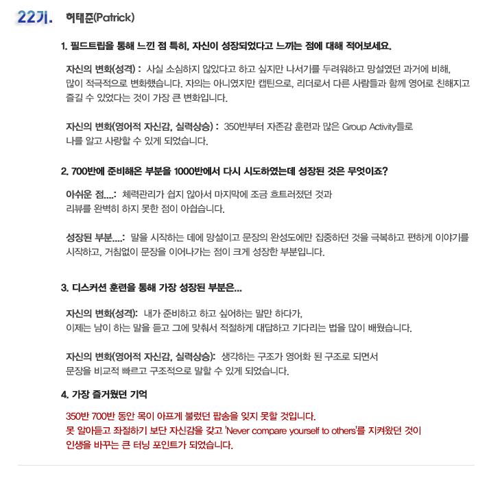 국내 집중 어학연수 22기 허태준 6개월의 변화과정