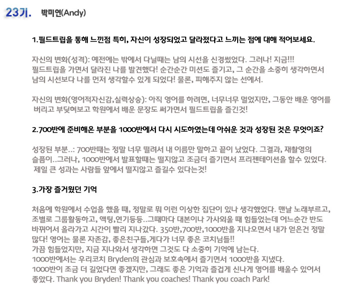 국내 집중 어학연수 23기 박수현 6개월의 변화과정