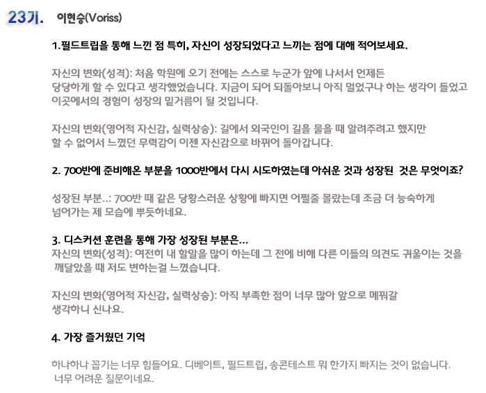 단기집중 국내 어학연수 23기 이현승 6개월의 변화과정