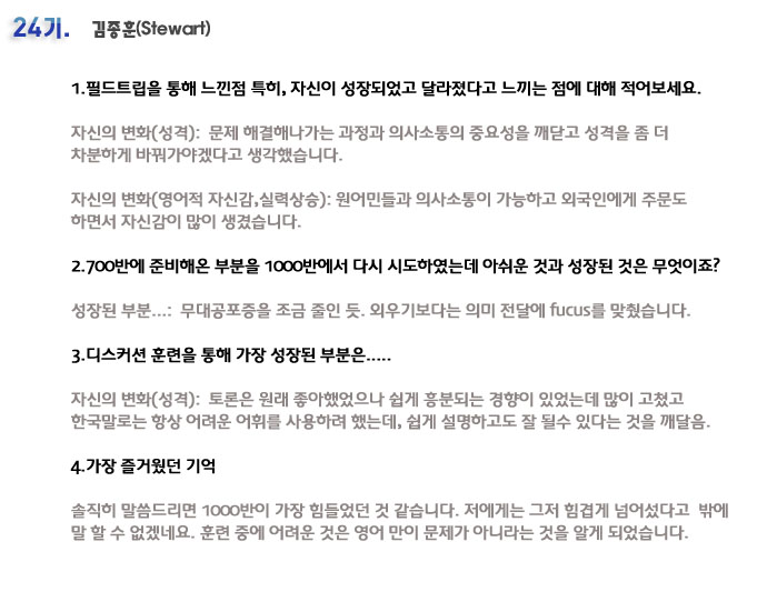 단기 집중 국내 어학연수 24기 김종훈 6개월의 변화과정