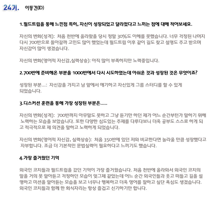 단기 집중 국내 어학연수 24기 이동건 6개월의 변화과정