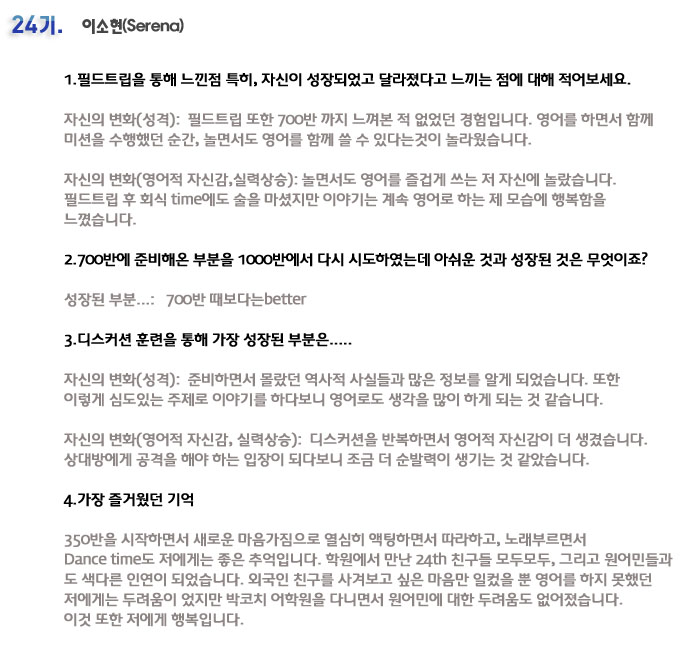단기 집중 국내 어학연수 24기 이소현 6개월의 변화과정