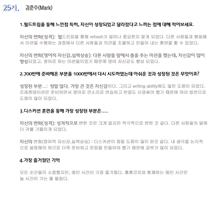 단기 집중 국내 어학연수 25기 김준수 6개월의 변화과정