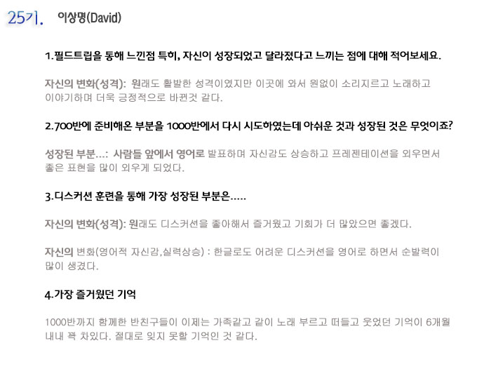 단기 집중 국내 어학연수 25기 이상명 6개월의 변화과정