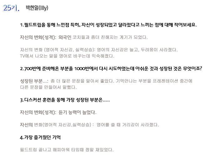 단기 집중 국내 어학연수 25기 박헌일 6개월의 변화과정