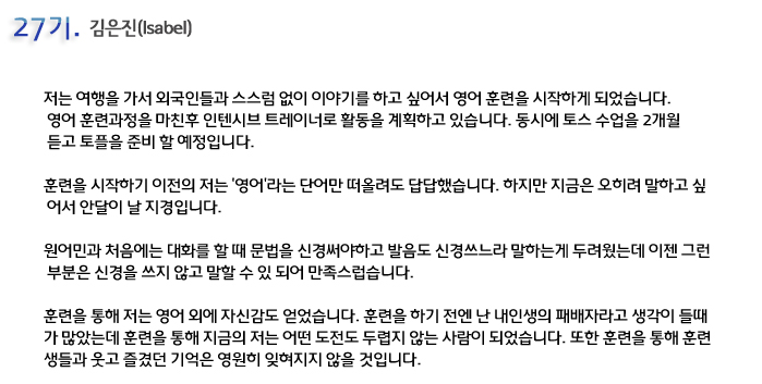 단기 집중 국내 어학연수 27기 김은진 6개월의 변화과정