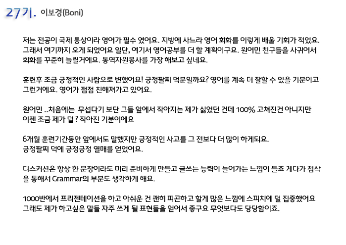 단기 집중 국내 어학연수 27기 이보경 6개월의 변화과정