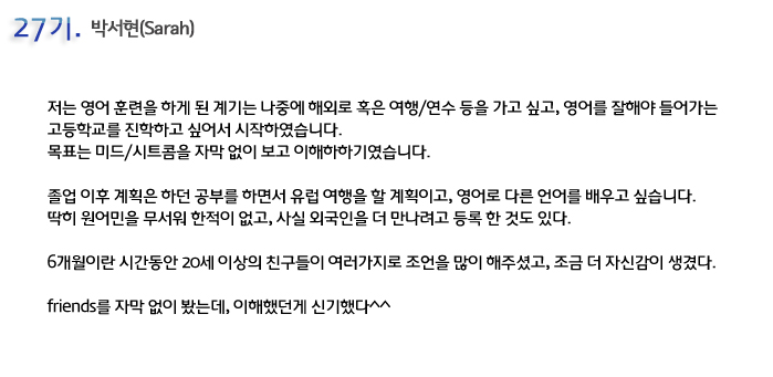 단기 집중 국내 어학연수 27기 박서현 6개월의 변화과정