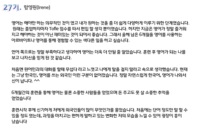 단기 집중 국내 어학연수 27기 함영원 6개월의 변화과정