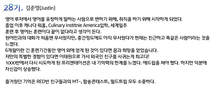 단기 집중 국내 어학연수 28기 김준영 6개월의 변화과정