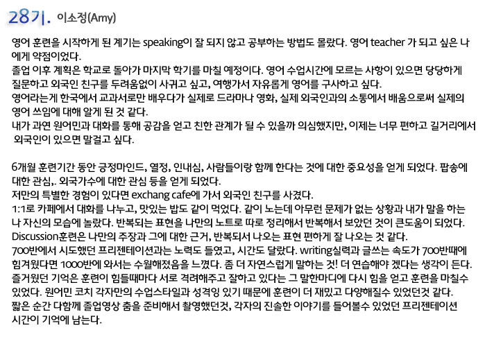 단기 집중 국내 어학연수 28기 이소정 6개월의 변화과정