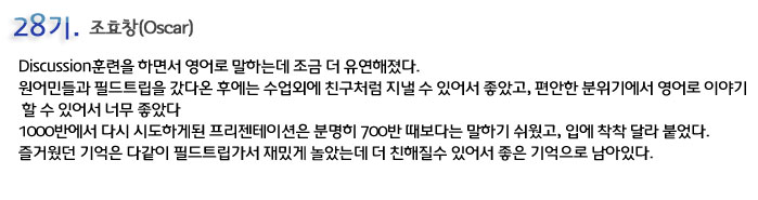 단기 집중 국내 어학연수 28기 조효창 6개월의 변화과정