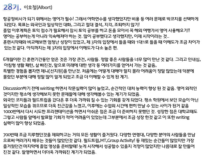 단기 집중 국내 어학연수 28기 이호철 6개월의 변화과정