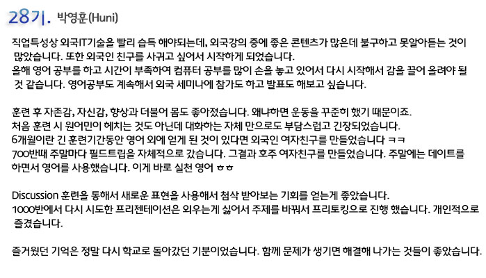 단기 집중 국내 어학연수 28기 박영훈 6개월의 변화과정