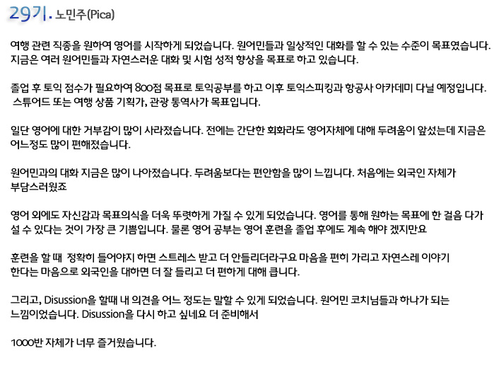 단기 집중 국내 어학연수 29기 노민주 6개월의 변화과정