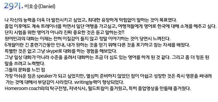 단기 집중 국내 어학연수 29기 이호승 6개월의 변화과정