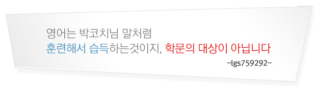영어는 박코치님 말처럼 훈련해서 습득하는것이지, 학문의 대상이 아닙니다.우리가 영어문법에 그렇게 매달리는 것은 국문학과 학생이 아니면서 국문학 전공책을 보는것과 같습니다.우리도 국문학을 배우지 않았지만 한국어를 자유자재로 사용하고 있잖아요..