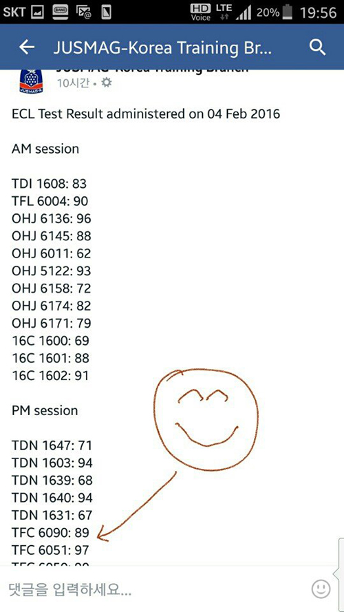 박코치훈련으로 ECL시험을!! 깜짝 놀랄만한 결과를 얻게 되었네요^^