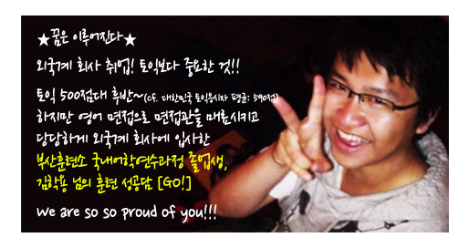 2011년 1월 ~ 2011년 8월 부산 박코치 어학원 수강(1~6월 집중반, 7~8 단과반 수강)