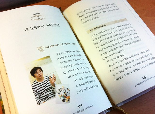 VD의 힘을 경험한 뒤 또 다른 꿈이 생겼다. 그전보다 더 구체적이고 현실적인 꿈, 이익훈 회장님처럼 되는 것이었다. 지질학과를 전공한 기자 출신으로 38세에 영어강사를 시작하고, 강사 생활 10년 만에 당신의 이름을 내건 어학원을 설립해 영어교육의 신화가 된 그 사람. 그분은 나의 롤모델이었고, 그 분의 삶은 내 눈앞에 살아 움직이는 꿈이었다. 내가 할 일은 그것을 아무 의심없이 따라가는 것뿐이었다.
