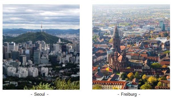 What city is this picture about? As you can guess, left one is Seoul. The other one is Freiburg in Germany. Guten Tag? Ich liebe Seoul!