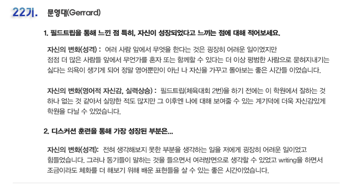 국내 집중 어학연수 22기 허태준 6개월의 변화과정