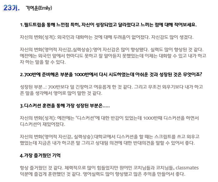 단기집중 국내 어학연수 23기 기여운 6개월의 변화과정