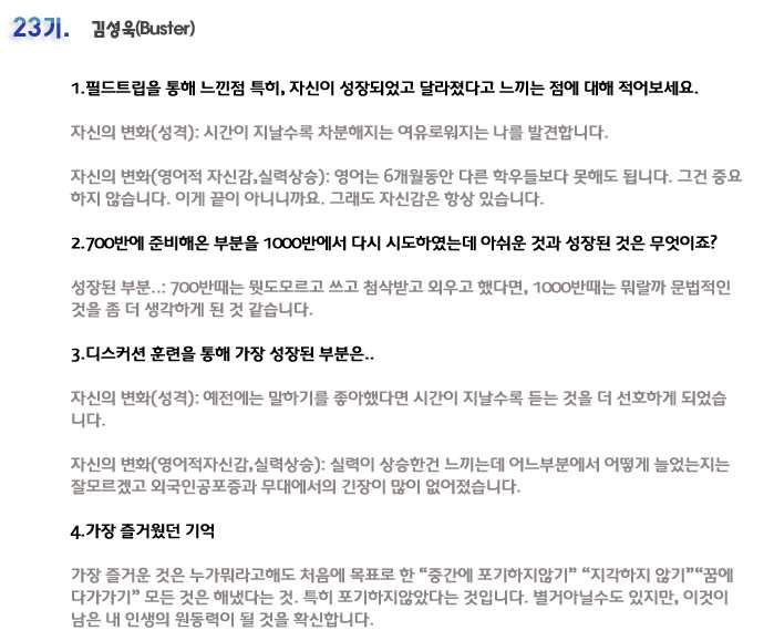 국내 집중 어학연수 23기 김성욱 6개월의 변화과정