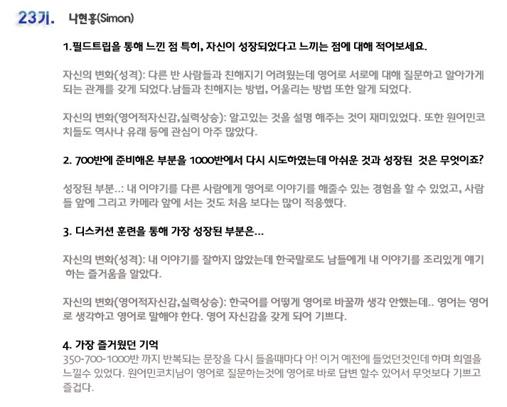 국내 집중 어학연수 23기 나현홍 6개월의 변화과정