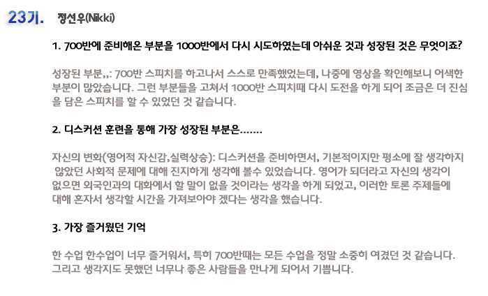 단기집중 국내 어학연수 23기 정선우 6개월의 변화과정