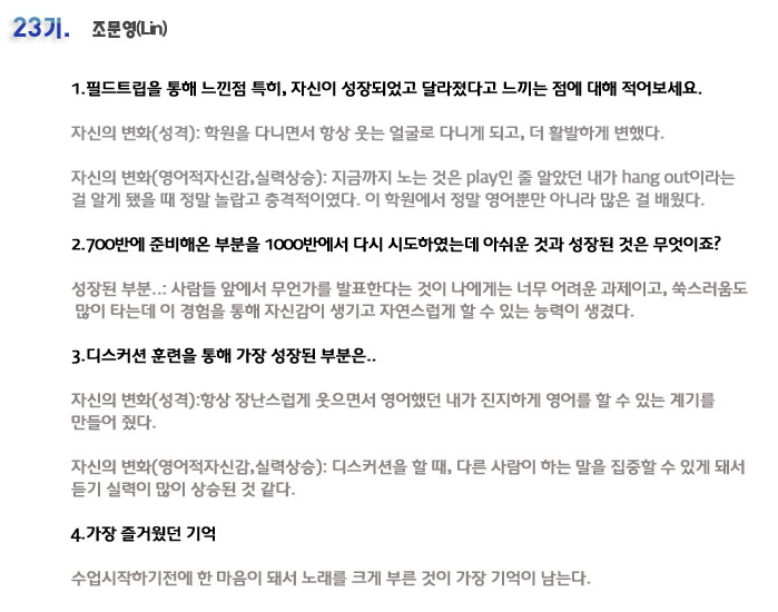 단기집중 국내 어학연수 23기 조문영 6개월의 변화과정