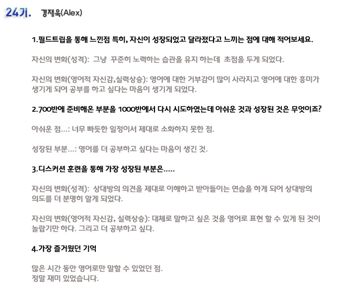 단기 집중 국내 어학연수 24기 경재욱 6개월의 변화과정
