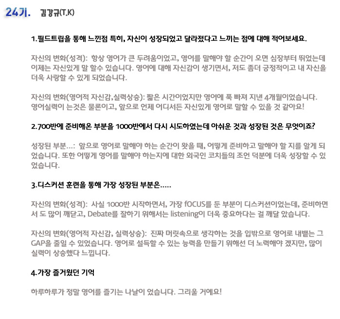 단기 집중 국내 어학연수 24기 김강규 6개월의 변화과정