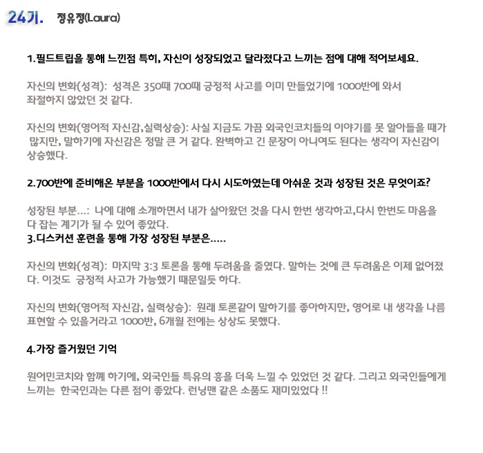 단기 집중 국내 어학연수 24기 정유정 6개월의 변화과정
