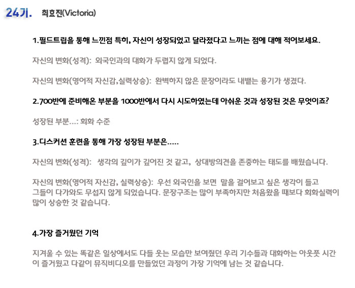 단기 집중 국내 어학연수 24기 최효진 6개월의 변화과정