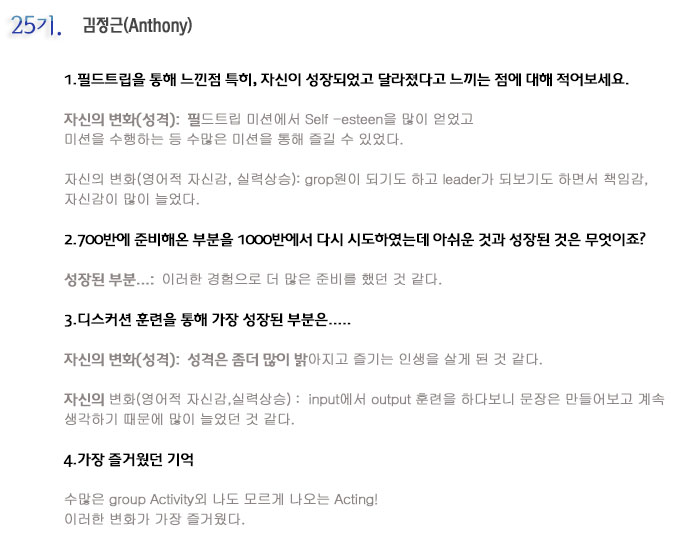 단기 집중 국내 어학연수 25기 김정근 6개월의 변화과정
