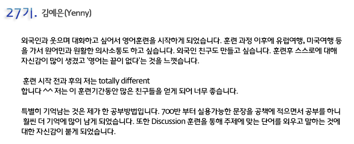 단기 집중 국내 어학연수 27기 김예은 6개월의 변화과정