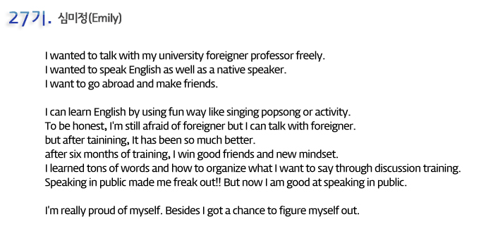 단기 집중 국내 어학연수 27기 심미정 6개월의 변화과정