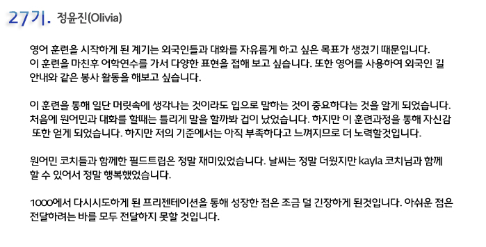 단기 집중 국내 어학연수 27기 정윤진 6개월의 변화과정