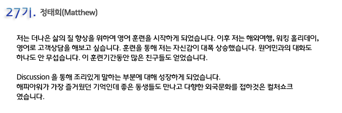 단기 집중 국내 어학연수 27기 정태희 6개월의 변화과정