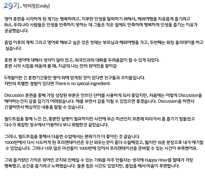 단기 집중 국내 어학연수 29기 박미정 6개월의 변화과정