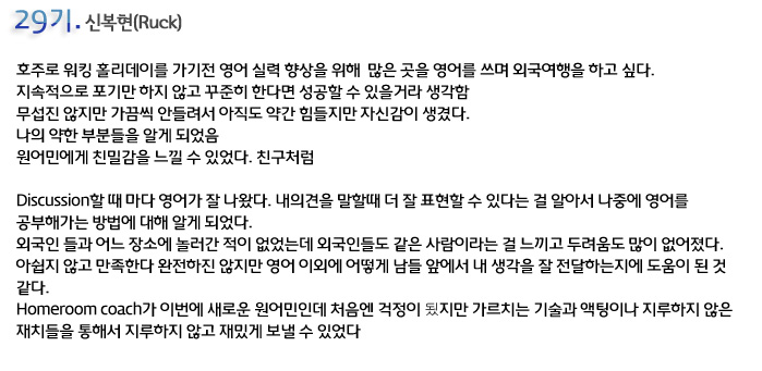 단기 집중 국내 어학연수 29기 신복현 6개월의 변화과정