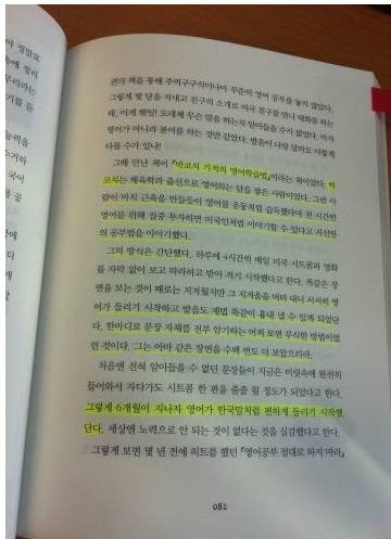 그의 방식은 간단했다. 하루에 4시간씩 매일 미국 시트콤과 영화를 자막 없이 보고 따라 하고 받아 적기 시작했다고 한다. 똑같은 장면을 보는 것이 때로는 지겨웠지만 그 지겨움을 버텨내니 서서히 영어가 들리기 시작하고 발음도 제법 똑같이 흉내 낼 수 있게 되었단다.